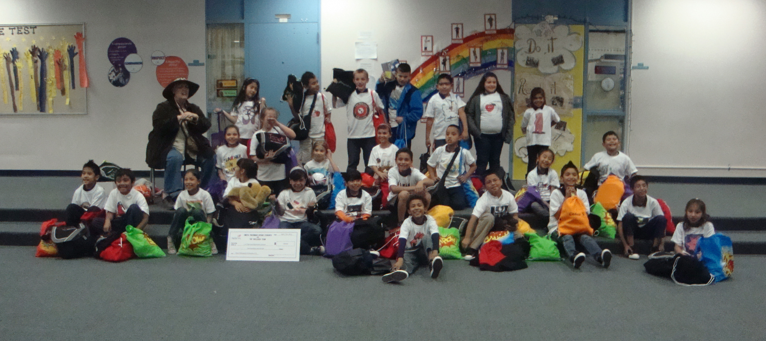 Freshman Design student’s spring PBL involved a community service project that helped homeless students in our school district. The Design students (from Video Game, Web Design, Interior Design and Fashions Design) used their skills in graphics to create a personal storybook and t-shirt about what each child dreamed to be when they grew up, sewed personalized backpacks and “ugly dolls,” built fun furniture and “reading pads” for their classroom, collected hygiene, school and snack items, and were able to secure a donation of Converse sneakers from Zappos for each child. The Art Institute of Las Vegas Design students supported our high school students and donated socks and backpacks to the students.